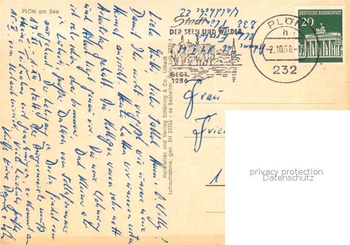 73172912 alte Postkarte Ploen See Fliegeraufnahme Seepartie postalisch gelaufen Erhaltung siehe scans [LiesaD40] KatCode: 11110001057057