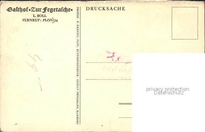 72058268 Ploen See Gasthof Pension Zur Fegetasche postalisch nicht gelaufen KatCode: 11110001057057