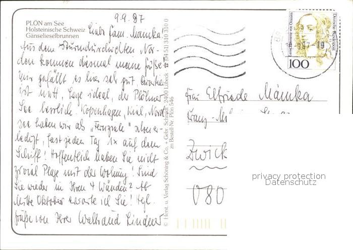 72373516 alte Postkarte Ploen See Holsteinische Schweiz Gaenselieselbrunnen postalisch gelaufen Erhaltung siehe scans KatCode: 11110001057057