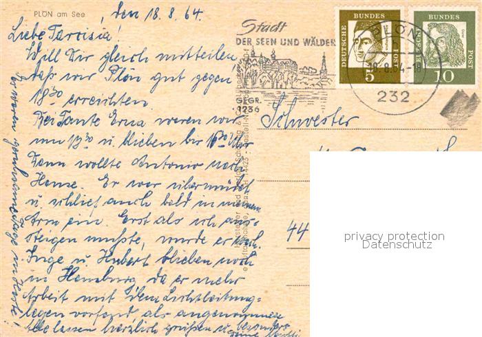 72781856 alte Postkarte Ploen See Inselstadt Schloss Holsteinische Schweiz Fliegeraufnahme postalisch gelaufen Erhaltung siehe scans [FriedD77] KatCode: 11110001057057