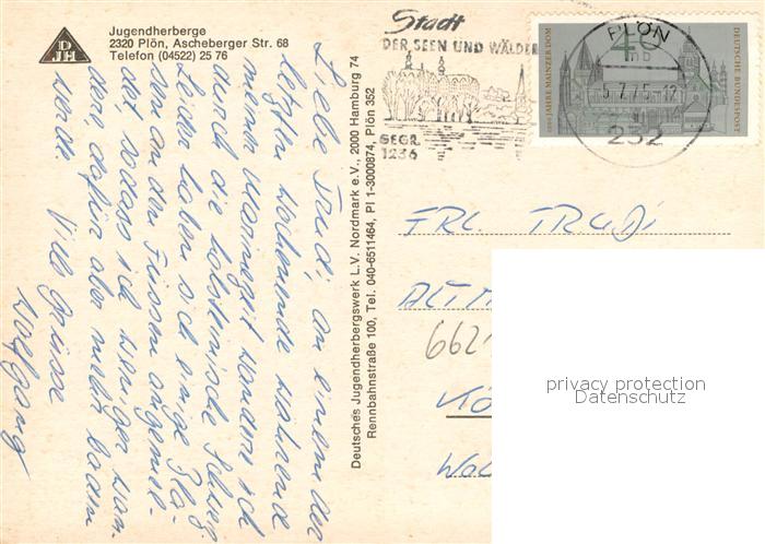 73633293 alte Postkarte Ploen See Jugendherberge postalisch gelaufen Erhaltung siehe scans [FriedD77] KatCode: 11110001057057