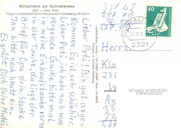 72835030 alte Postkarte Ploen See Muetterheim am Schmalensee Naturpark Holsteinische Schweiz Fliegeraufnahme postalisch gelaufen Erhaltung siehe scans [FriedD77] KatCode: 11110001057057