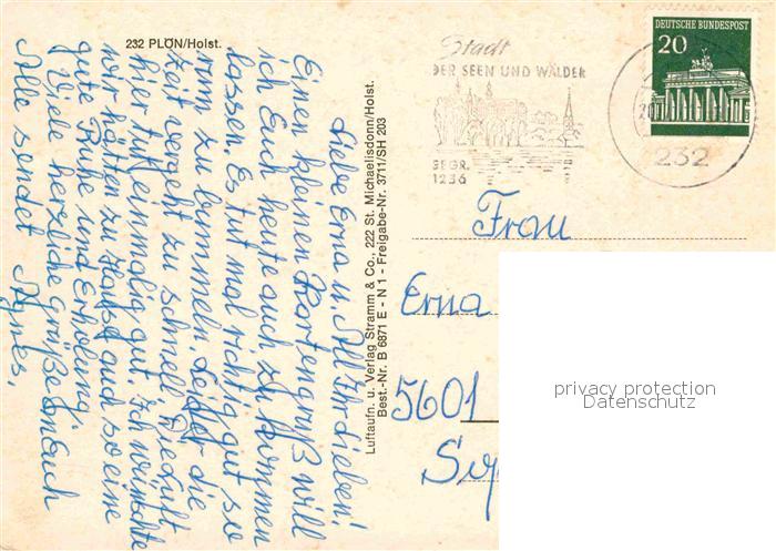 72835137 alte Postkarte Ploen See Naturpark Holsteinische Schweiz Fliegeraufnahme postalisch gelaufen Erhaltung siehe scans [FriedD77] KatCode: 11110001057057