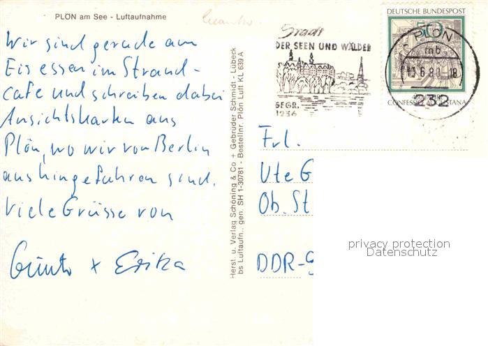 72781151 alte Postkarte Ploen See Naturpark Holsteinische Schweiz Fliegeraufnahme postalisch gelaufen Erhaltung siehe scans [FriedD77] KatCode: 11110001057057