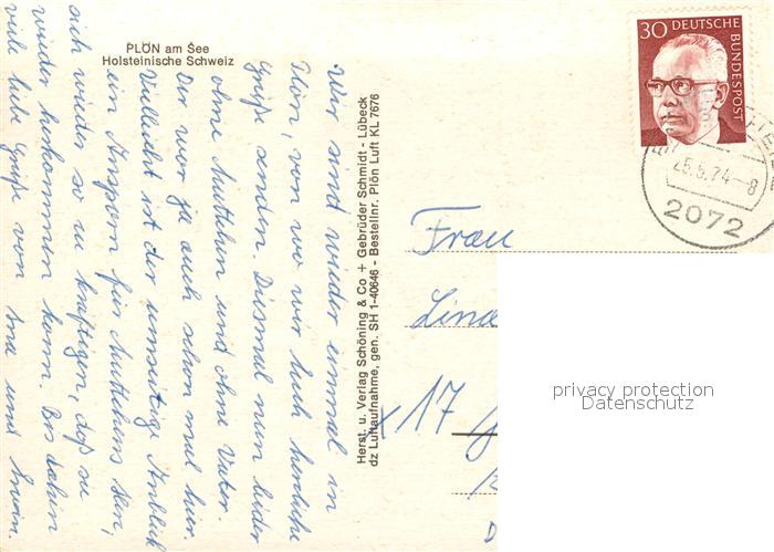 73208782 alte Postkarte Ploen See Naturpark Holsteinische Schweiz Fliegeraufnahme postalisch gelaufen Erhaltung siehe scans [FriedD77] KatCode: 11110001057057