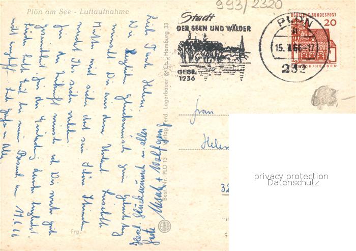 73169523 alte Postkarte Ploen See Naturpark Holsteinische Schweiz Fliegeraufnahme postalisch gelaufen Erhaltung siehe scans [FriedD77] KatCode: 11110001057057
