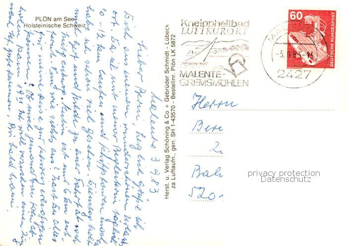 73805152 alte Postkarte Ploen See Naturpark Holsteinische Schweiz Seenlandschaft postalisch gelaufen Fliegeraufnahme Erhaltung siehe scans [FriedD77] KatCode: 11110001057057