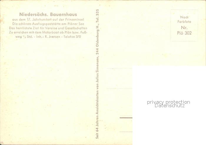 71989160 Ploen See Niedersaechsisches Bauernhaus postalisch nicht gelaufen Erhaltung siehe scans KatCode: 11110001057057