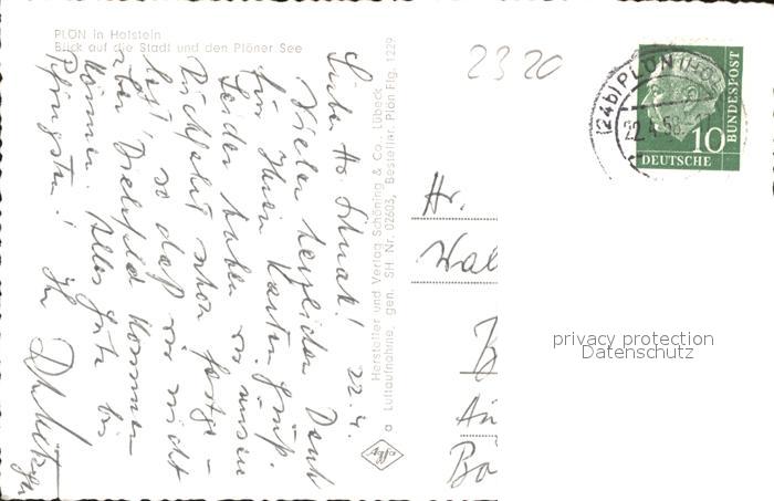 41586314 Ploen See Ortsansicht mit Kirche Ploener See Holsteinische Schweiz Fliegeraufnahme postalisch gelaufen Erhaltung siehe scans Alte Ansichtskarte Postkarte alte Postkarte hz_F Katcode 11110001057057