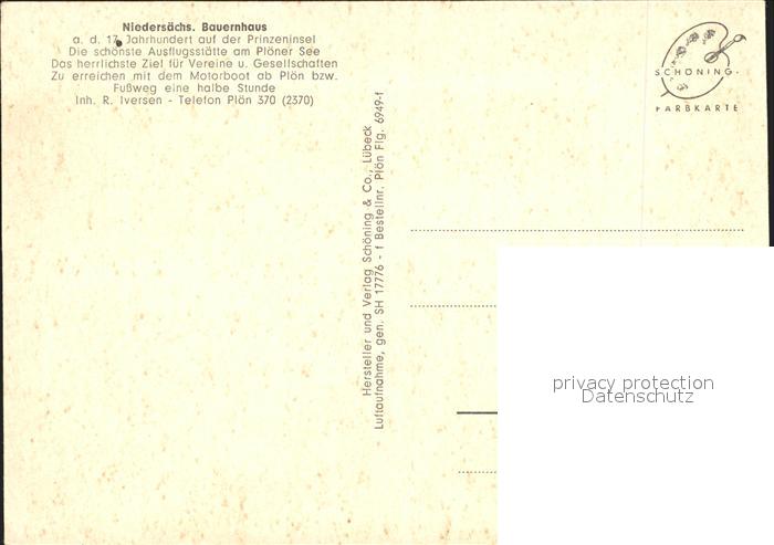 72063218 Ploen See Prinzeninsel Fliegeraufnahme Bauernhaus postalisch nicht gelaufen Erhaltung siehe scans KatCode: 11110001057057