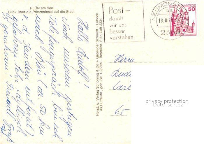 72825281 alte Postkarte Ploen See Prinzeninsel Seenlandschaft Holsteinische Schweiz Fliegeraufnahme postalisch gelaufen Erhaltung siehe scans [FriedD77] KatCode: 11110001057057