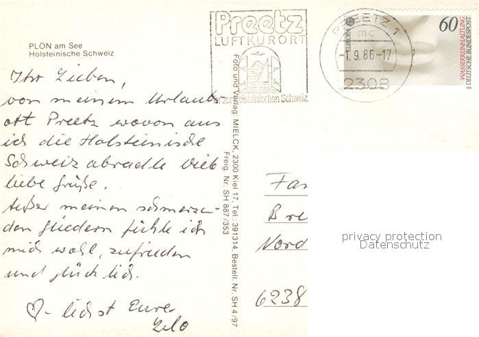 73203466 alte Postkarte Ploen See Schloss Naturpark Holsteinische Schweiz Fliegeraufnahme postalisch gelaufen Erhaltung siehe scans [FriedD77] KatCode: 11110001057057