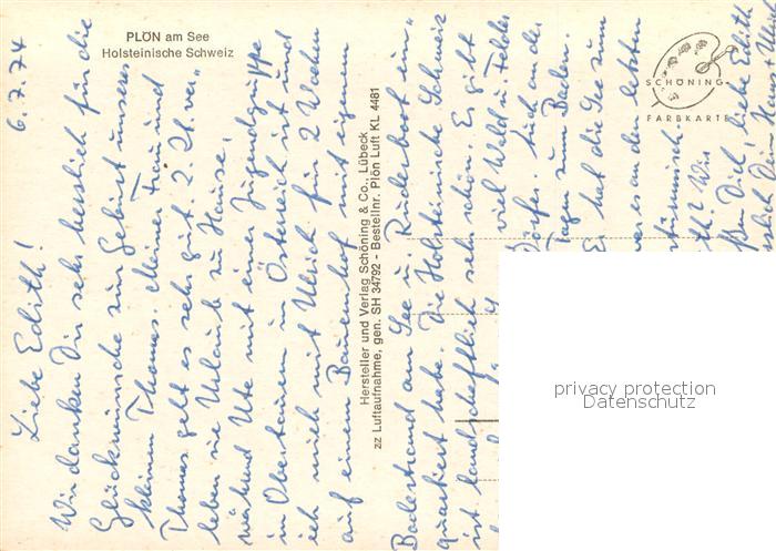 73721122 Ploen See Schloss Naturpark Holsteinische Schweiz postalisch nicht gelaufen Fliegeraufnahme Erhaltung siehe scans [FriedD77] KatCode: 11110001057057