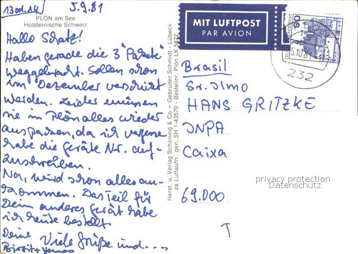 72262211 alte Postkarte Ploen See Schloss Ploener See Naturpark Holsteinische Schweiz Fliegeraufnahme postalisch gelaufen Erhaltung siehe scans KatCode: 11110001057057