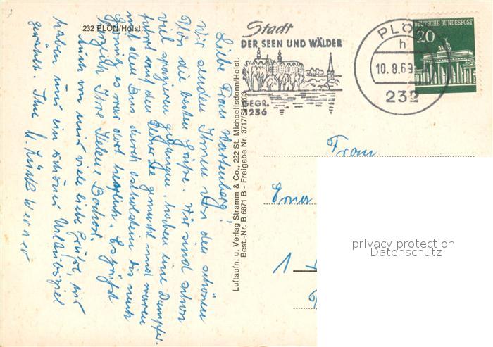73684522 alte Postkarte Ploen See Schloss Seenlandschaft Holsteinische Schweiz Fliegeraufnahme postalisch gelaufen Erhaltung siehe scans [FriedD77] KatCode: 11110001057057