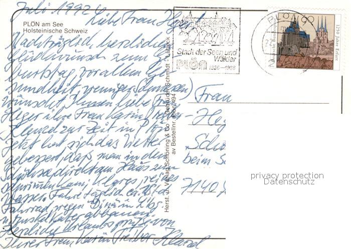 73208064 alte Postkarte Ploen See Schloss Strassenpartie Brunnen Strandhotel postalisch gelaufen Erhaltung siehe scans [WerneD78] KatCode: 11110001057057