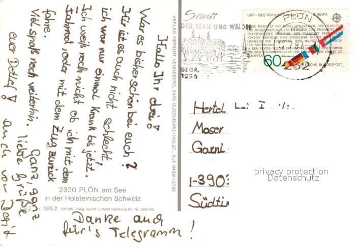 73636885 alte Postkarte Ploen See Seenlandschaft Holsteinische Schweiz Fliegeraufnahme postalisch gelaufen Erhaltung siehe scans [FriedD77] KatCode: 11110001057057