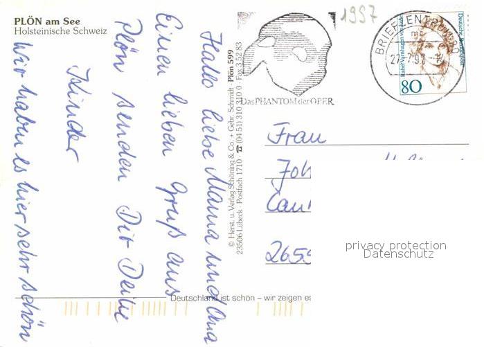 72862801 alte Postkarte Ploen See Strassenpartien Schloss Kirche postalisch gelaufen Erhaltung siehe scans [WerneD78] KatCode: 11110001057057