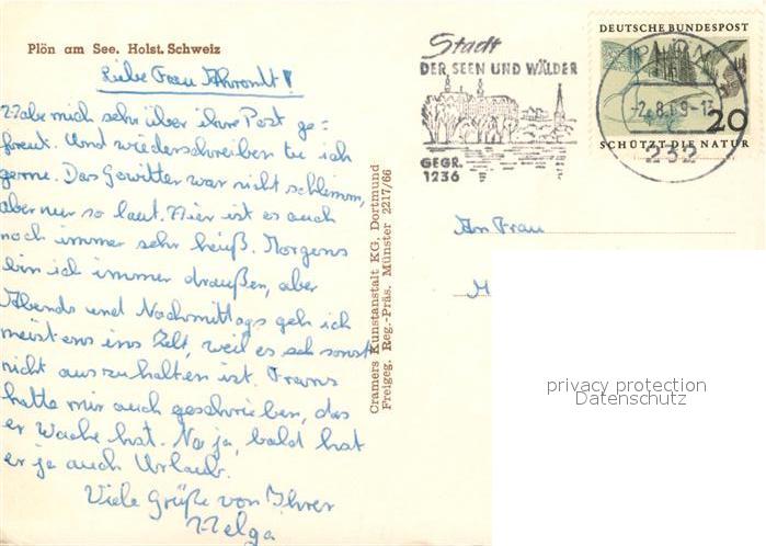 73088985 alte Postkarte Ploen See postalisch gelaufen Erhaltung siehe scans [PaolaD17] KatCode: 11110001057057