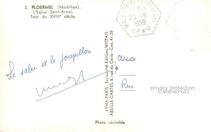 13799842 Ploermel Eglise Saint Armel Tour du XVIIIe siecle postalisch gelaufen Erhaltung siehe scans [WerneD78] carte postale Wern Katcode 11170056356165