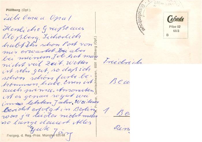 73887294 alte Postkarte Ploessberg Oberpfalz Fliegeraufnahme postalisch gelaufen Erhaltung siehe scans [FriedD77] KatCode: 11110009377146