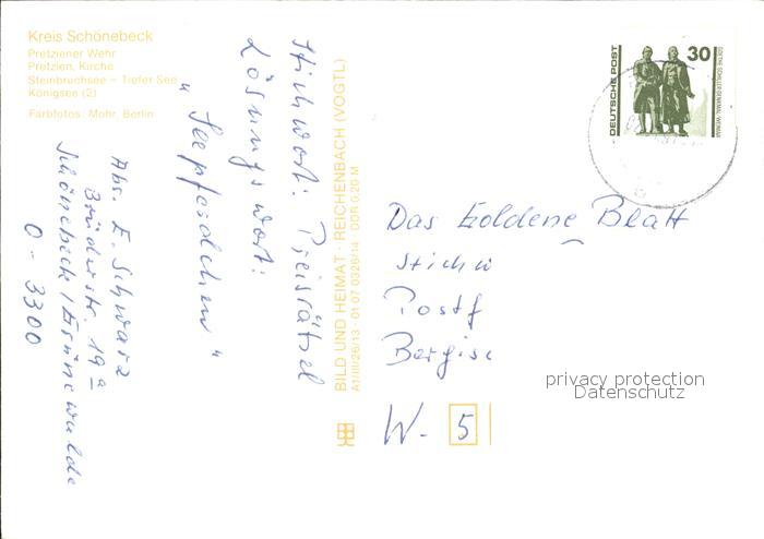 72415457 alte Postkarte Ploetzky Kreis Schoenebeck Pretziener Wehr Kirche postalisch gelaufen Erhaltung siehe scans KatCode: 11110015089250