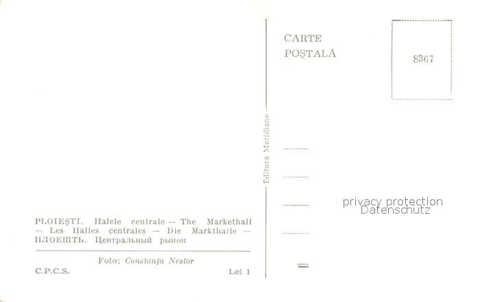 13601773 Ploiesti Markthalle postalisch nicht gelaufen Erhaltung siehe scans [LiesaD40] Lies Katcode 11430