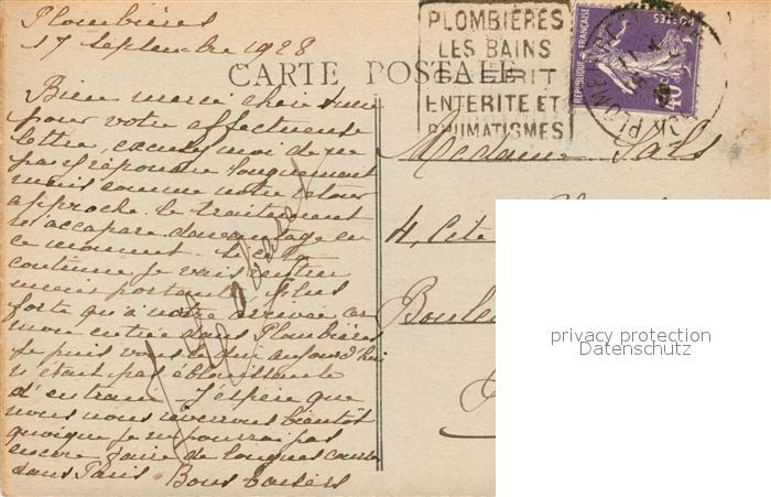 13562194 carte postale Plombieres-les-Bains Vosges Vue centrale postalisch gelaufen Erhaltung siehe scans [FriedD77] KatCode: 11170088188351