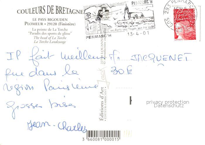13581937 Plomeur Pointe de La Torche vue aérienne postalisch gelaufen Erhaltung siehe scans [FriedD77] carte postale Frie Katcode 11170029429171