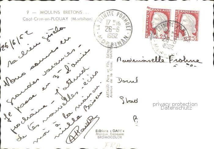 11905305 carte postale Plouay Moulins Bretons postalisch gelaufen Erhaltung siehe scans KatCode: 11170056156166