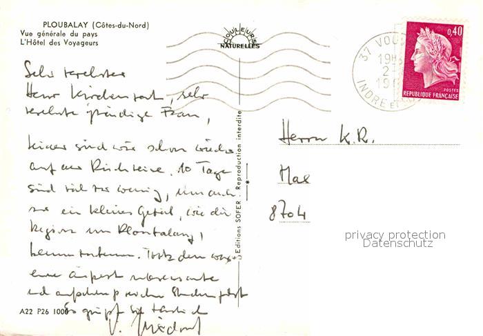12905709 carte postale Ploubalay Hotel des Voyageurs Eglise vue aerienne postalisch gelaufen Erhaltung siehe scans [FriedD77] KatCode: 11170022122209
