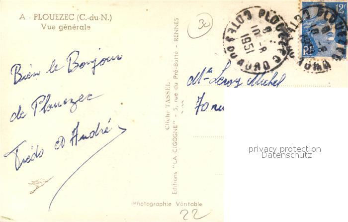 13501312 carte postale Plouezec Panorama Kirche postalisch gelaufen Erhaltung siehe scans [KathaD81] KatCode: 11170022422214