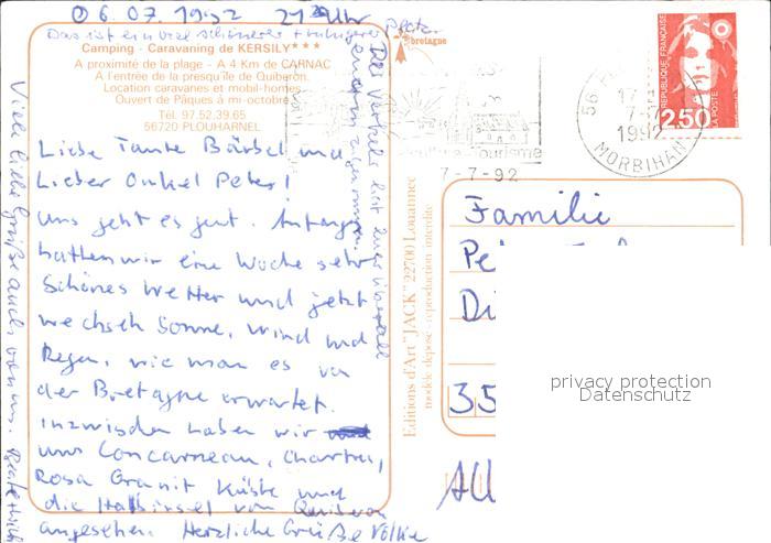 12037979 carte postale Plouharnel Camping de Kersily Felsen Kirche Vue aerienne postalisch gelaufen KatCode: 11170056156168