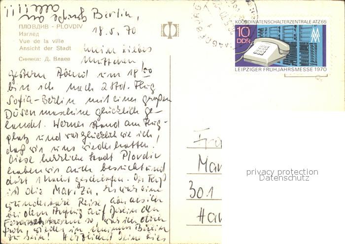 old postcard Plovdiv Fliegeraufnahme Bruecke postalisch gelaufen Erhaltung siehe scans