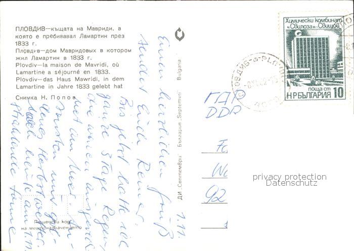 old postcard Plovdiv Haus Mawridie postalisch gelaufen Erhaltung siehe scans