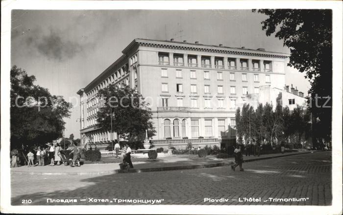 old postcard Plovdiv Hotel Trimontium postalisch gelaufen Erhaltung siehe scans