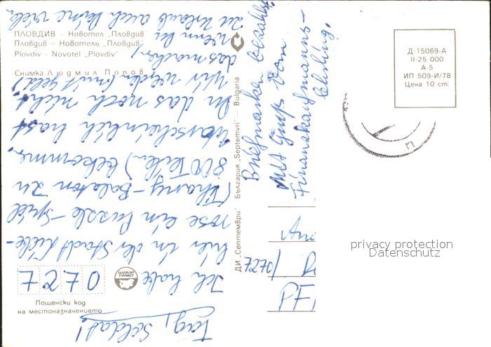 old postcard Plovdiv Novotel Pool postalisch gelaufen Erhaltung siehe scans