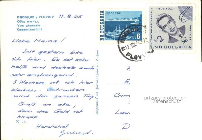 old postcard Plovdiv Stadtblick postalisch gelaufen Erhaltung siehe scans