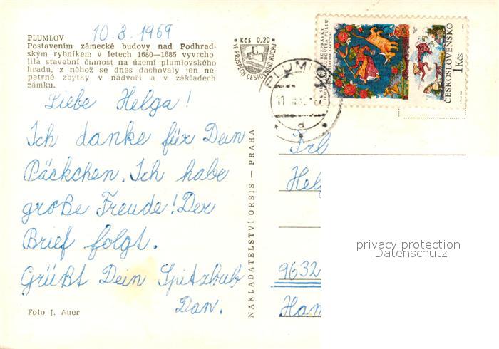 old postcard Plumlov Postavenim zamecke budovy nad Podhradskym postalisch gelaufen Erhaltung siehe scans [WerneD78]