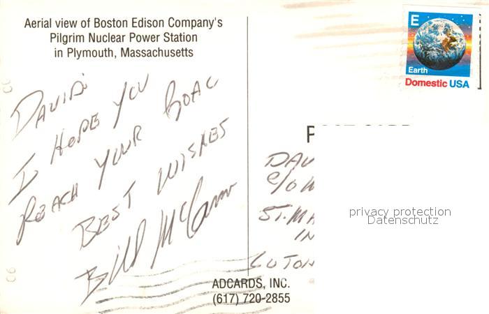 73079009 old postcard Plymouth Massachusetts Fliegeraufnahme Boston Edison Company postalisch gelaufen Erhaltung siehe scans [KathaD81] KatCode: 14140230000000