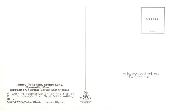 72944141 Plymouth Massachusetts Jenny Grist Mill Spring Lane postalisch nicht gelaufen Erhaltung siehe scans [WerneD78] KatCode: 14140230000000