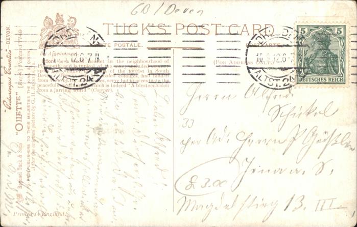 10928202 old postcard Plymouth UK South West Plymouth Picturesque Devon Kuh postalisch gelaufen KatCode: 11570UKK4K41HG