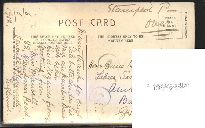 old postcard Plymouth UK South West Radford Woods postalisch gelaufen