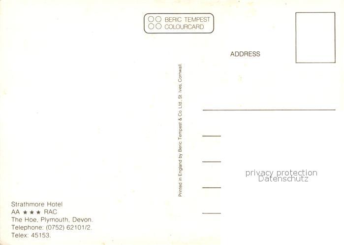 13187346 Plymouth UK South West Strathmore Hotel postalisch nicht gelaufen Erhaltung siehe scans [NatalD47] KatCode: 11570UKK4K41HG