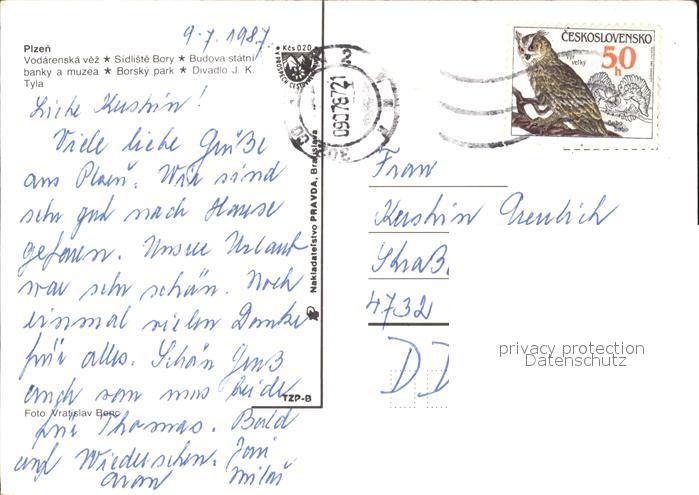 old postcard Plzen Pilsen postalisch gelaufen Erhaltung siehe scans