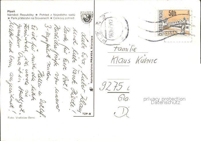 old postcard Plzen Pilsen postalisch gelaufen Erhaltung siehe scans