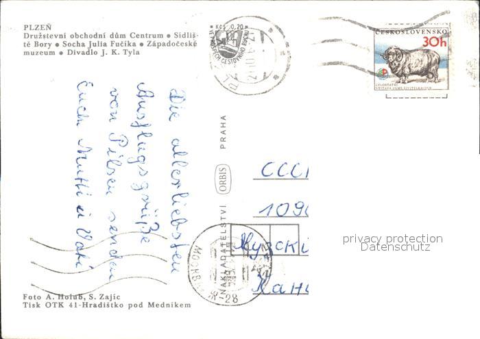 old postcard Plzen Pilsen postalisch gelaufen Erhaltung siehe scans