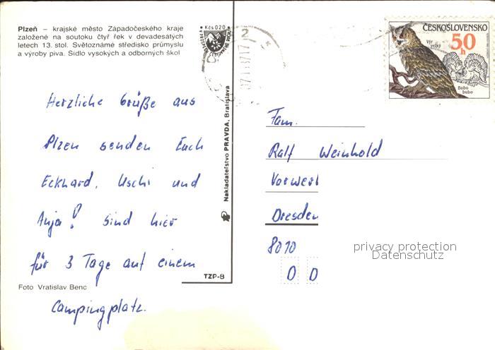 old postcard Plzen Pilsen Bruecke und Kirchen postalisch gelaufen Erhaltung siehe scans