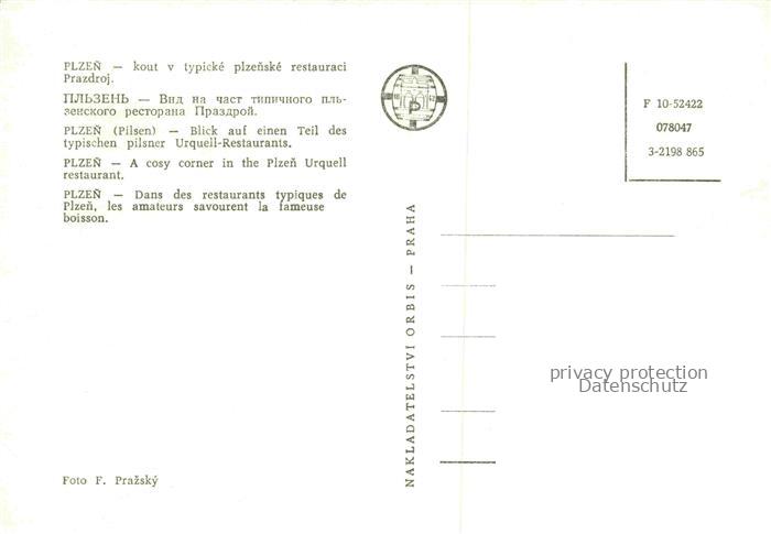 74095926 PLZEN Pilsen CZ kout v typicke plzenske restauraci Praxdroj postalisch nicht gelaufen Erhaltung siehe scans [WerneD78] KatCode: 11520