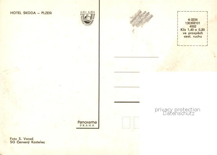 Plzen Pilsen Hotel Skoka postalisch nicht gelaufen Erhaltung siehe scans [KathaD81]